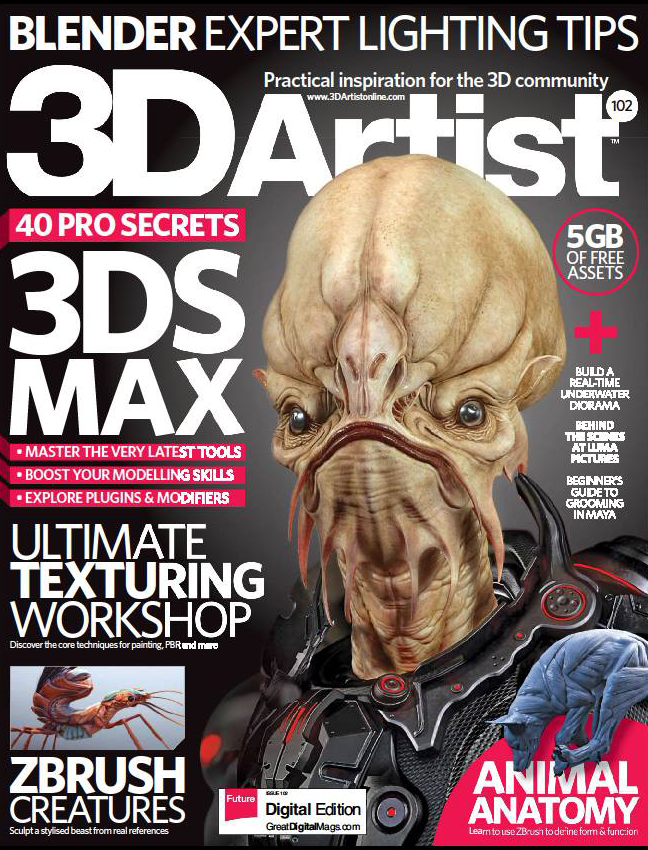 My work, Wooden Bedroom, was selected to be featured in 3D Artist magazine, Issue 102, in December 2016